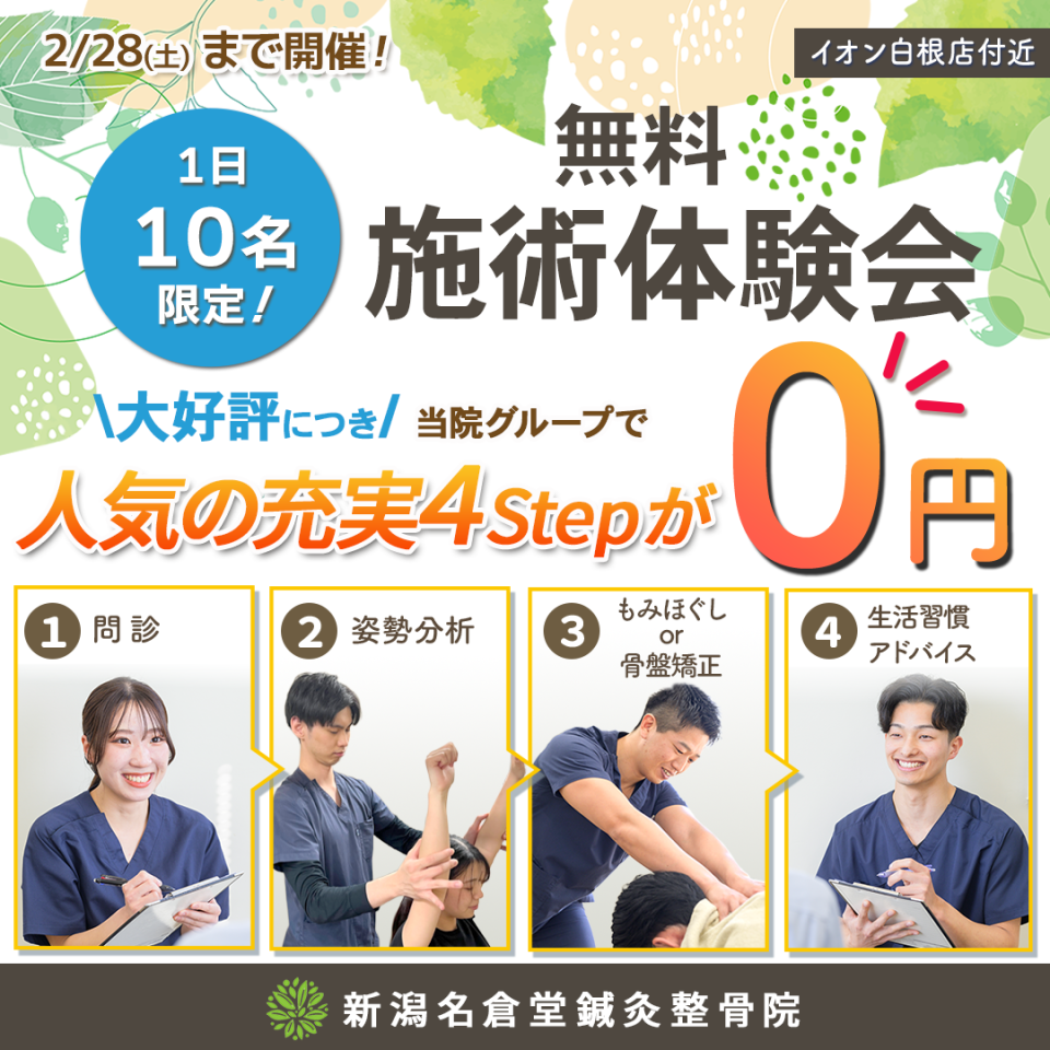 | 腰回りの歪み改善整体コース | 2,500円 | 4,000円 |